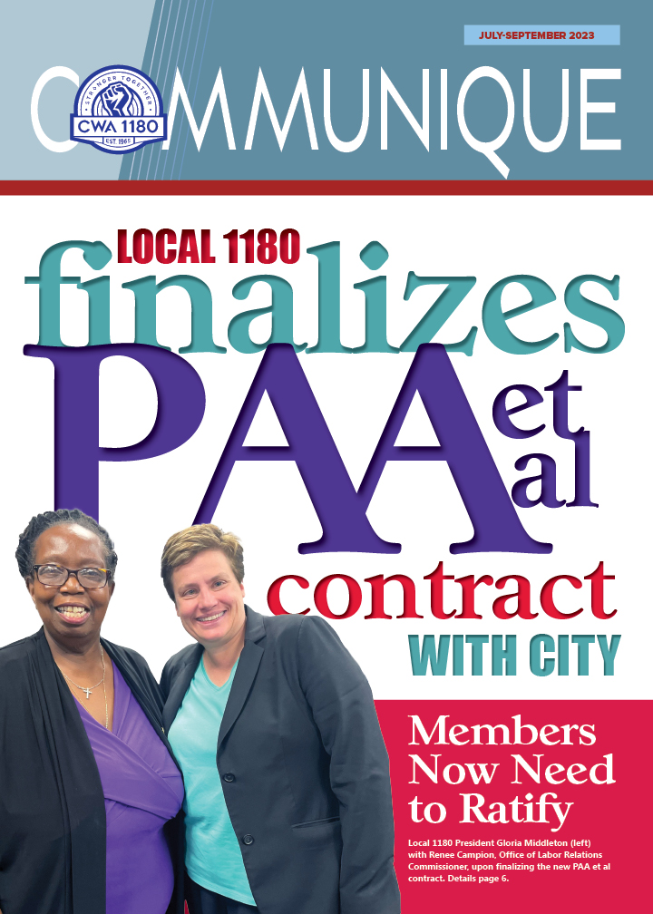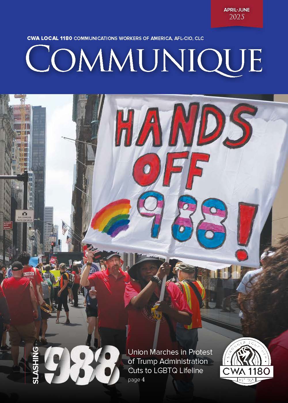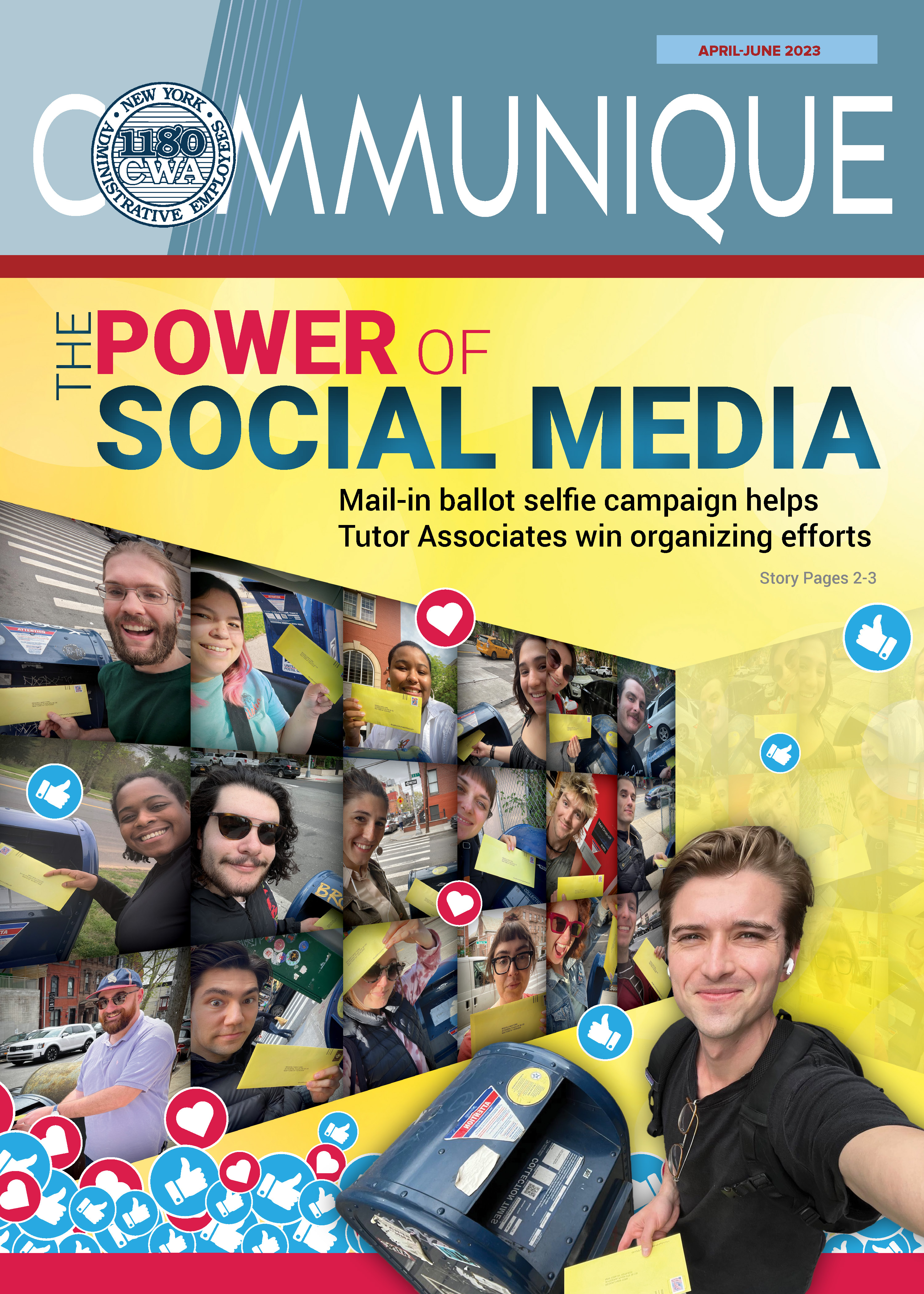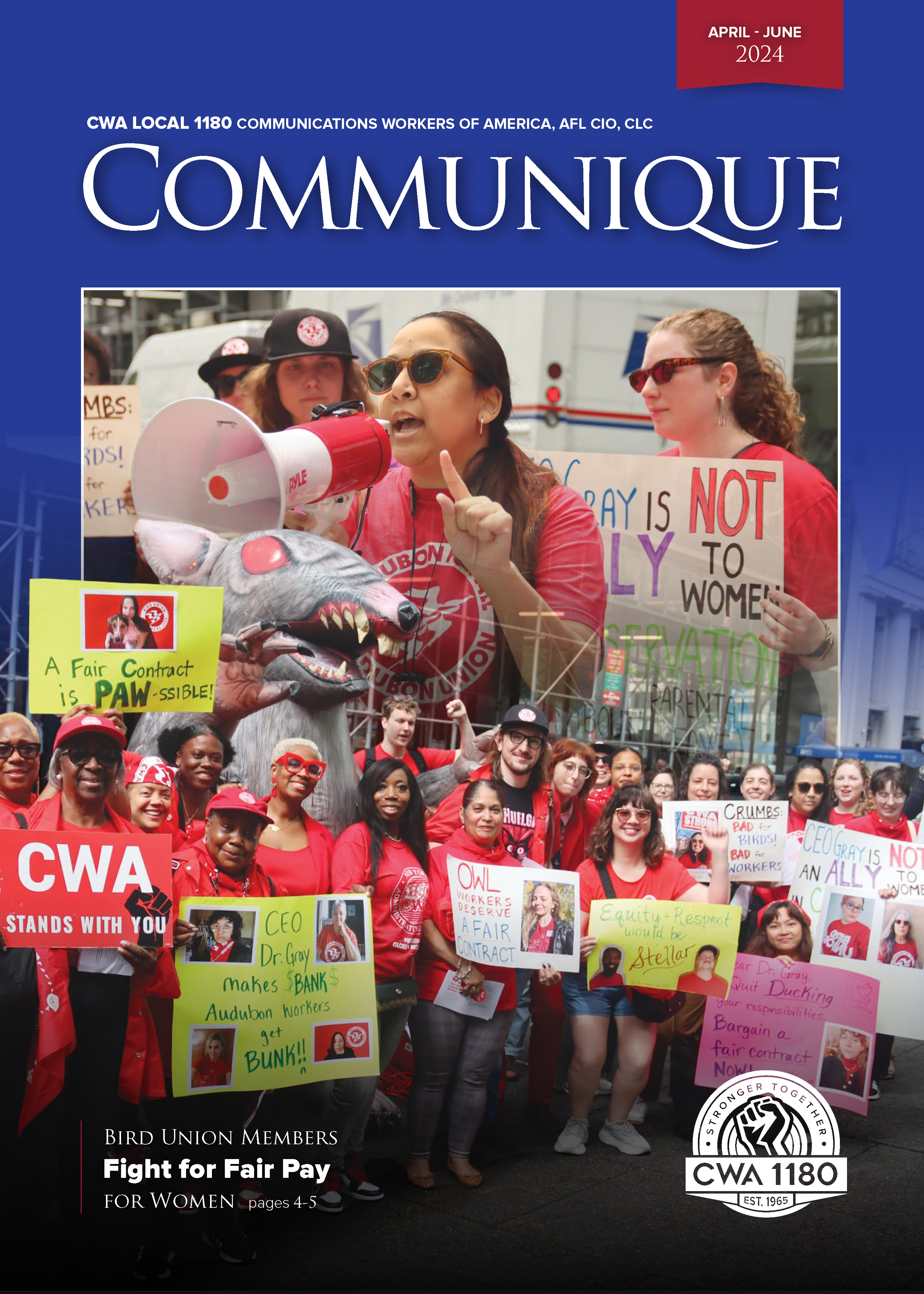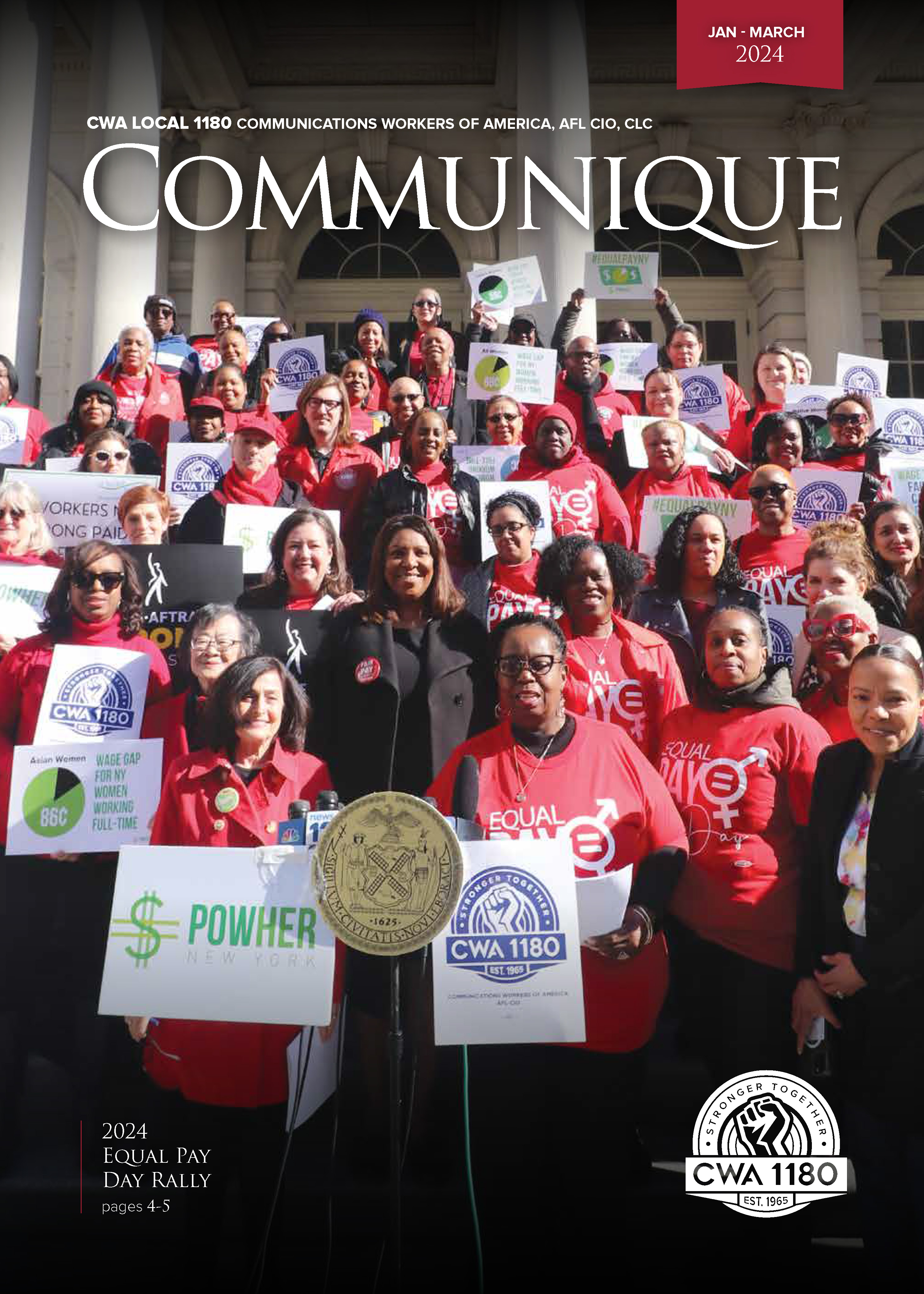 CWA Local 1180’s quarterly magazine, the Communique, has consistently garnered top awards in the Metro New York Labor Communications Council and the International Labor Communications Association contests. Competing against some of the country's best labor publications, the Communique repeatedly stands out in categories for both writing and graphic design, while Local 1180's outreach campaigns and social media programs take the highest of honors.
